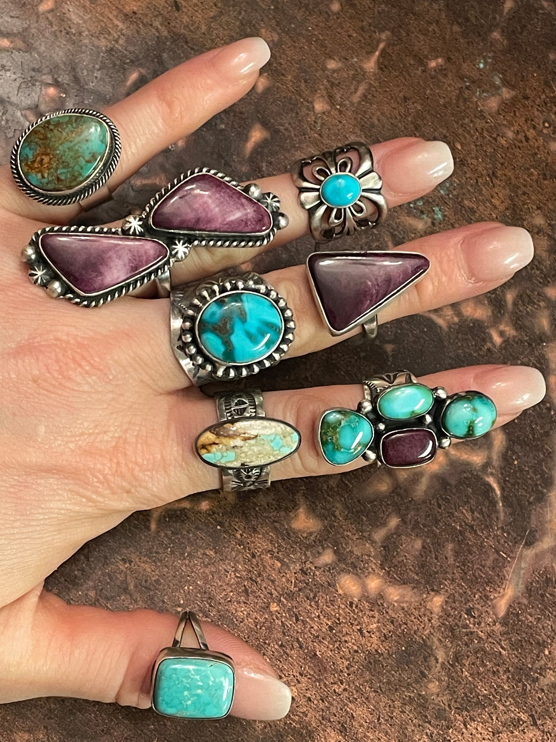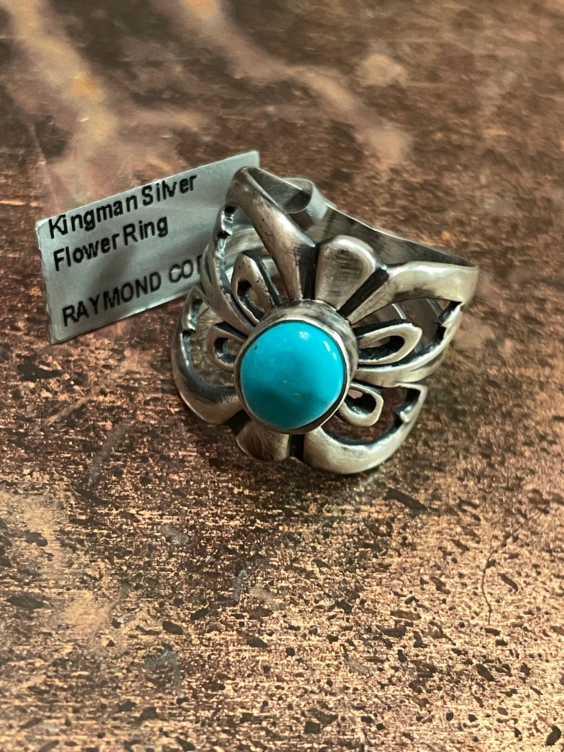 Kingman Silver Flower ring, size 7
